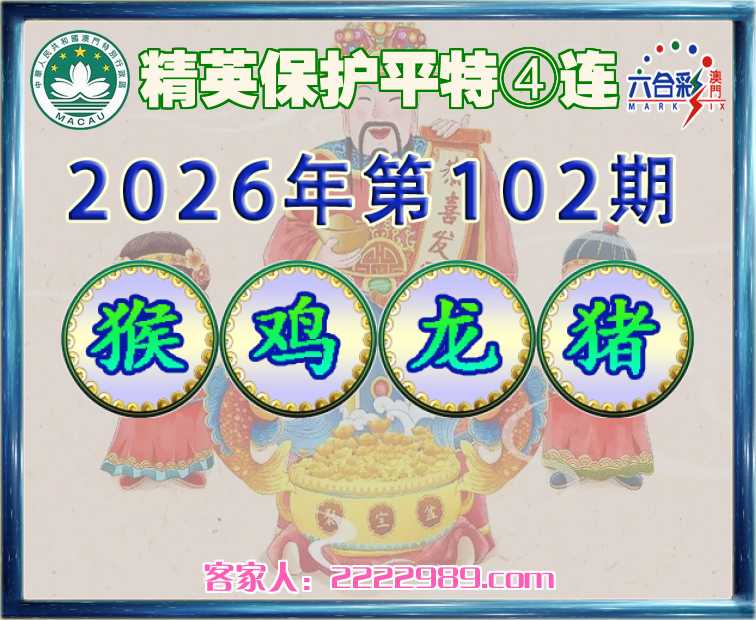 102期:【精英保护】 平特④连【猴鸡龙猪】开:猴47,鸡46,龙03,猪20