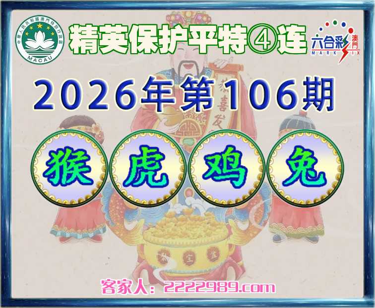 106期:【精英保护】 平特④连【猴虎鸡兔】开:猴11,虎05,鸡22,兔40